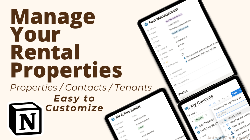 - Real Estate Rental Property Tracker Notion Template, including links between contacts and properties. Everything is ready to use.